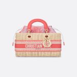 Part of the Dioriviera capsule, the Lady D-Joy bag epitomizes Dior’s vision of elegance and beauty. Sleek and refined, the timeless creation pays homage to the streamlined aesthetic of the iconic Lady Dior line. Traditionally crafted in natural hand-woven wicker, the bag exemplifies Dior’s savoir-faire. It features wicker top handles and a coral Toile de Jouy jacquard interior pouch with drawstring cords. The embroidered Christian Dior Paris band, inspired by the Dior Book Tote, and gold-finish metal D.I.O.R. charms embellish its silhouette. Equipped with one detachable chain strap and another adjustable and removable leather strap, the medium Lady D-Joy bag can be carried by hand, worn over the shoulder or crossbody as a daily companion.