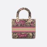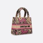 • Part of the Dioriviera capsule, the Lady D-Lite bag combines classic elegance with House modernity. The raffia style is fully embroidered with the Toile de Jouy Sauvage motif in candy pink. A Christian Dior Paris signature adorns the front, while D.I.O.R. charms in pale gold-finish metal further enhance and highlight the silhouette. Featuring a wide, removable embroidered shoulder strap, the medium Lady D-Lite bag can be carried by hand or worn crossbody.