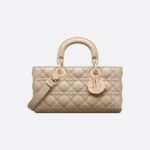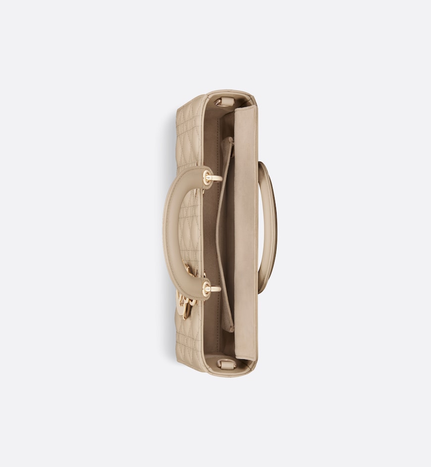 - The Lady D-Joy bag captures the House’s vision of elegance and beauty. Refined and sleek, this timeless style showcases the iconic streamlined aesthetic of the Lady Dior line. Crafted in sand-colored lambskin with Cannage stitching, it is enhanced by pale gold-finish metal D.I.O.R. charms embellishing its silhouette. Featuring one removable chain shoulder strap and another adjustable and removable