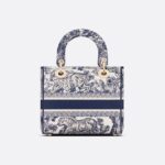 • The Lady D-Lite bag combines classic elegance with House modernity. The style is fully embroidered with the blue Toile de Jouy motif. The front features a Christian Dior Paris signature while the thick D.I.O.R. charms in pale gold-finish metal enhance the silhouette. Equipped with a wide, reversible and removable embroidered shoulder strap, the medium Lady D-Lite bag can be carried by hand or worn crossbody.