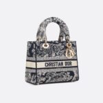 The Lady D-Lite bag combines classic elegance with House modernity. The style is fully embroidered with the blue Toile de Jouy Reverse motif, a variation of the hallmark House pattern with a play on reversed colors. The front features a Christian Dior Paris signature while the thick D.I.O.R. charms in pale gold-finish metal enhance the silhouette. Equipped with a wide, reversible and removable embroidered shoulder strap, the medium Lady D-Lite bag can be carried by hand or worn crossbody.