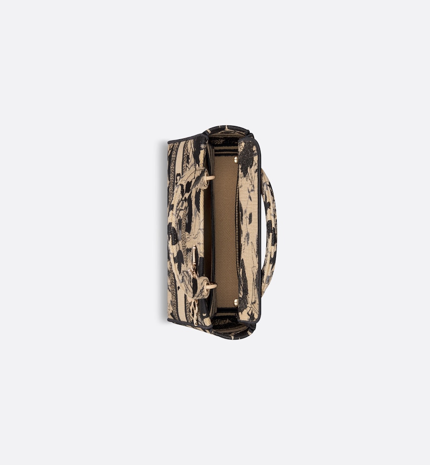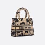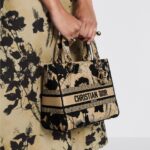 The Lady D-Lite bag embodies the House’s classic elegance and modernity. The style is fully embroidered with the Fleurs Mystiques motif in beige and black, a hypnotic and poetic floral pattern, while pale gold-finish metal D.I.O.R. charms embellish and illuminate the silhouette. Featuring a wide, removable embroidered shoulder strap, the medium Lady D-Lite bag can be carried by hand or worn crossbody.