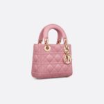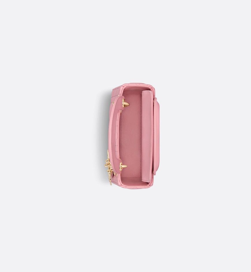 - The Lady Dior bag embodies Dior’s vision of elegance and beauty. Sleek and refined, the timeless style is crafted in melocoton pink lambskin with Cannage stitching, creating the instantly recognizable quilted texture. Pale gold-finish metal D.I.O.R. charms further embellish and highlight its silhouette. Featuring a removable chain shoulder strap, the miniature Lady Dior bag can be carried by hand or worn crossbody