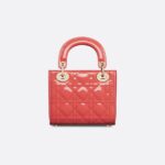 - Part of the Dioriviera capsule, the Lady Dior bag embodies Dior’s vision of elegance and beauty. Sleek and refined, the style is timeless. It is crafted in coral patent calfskin with Cannage stitching, creating the unmistakable quilted texture, while the pale gold-finish metal D.I.O.R. charms further embellish its silhouette. Featuring a removable chain shoulder strap, the miniature Lady Dior bag can be carried by hand or