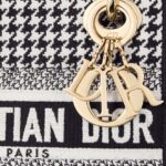 The Lady D-Lite bag combines classic elegance with House modernity. The style is fully embroidered with the black and white Houndstooth motif. A Christian Dior Paris signature accents the front, while pale gold-finish metal D.I.O.R. charms embellish and illuminate the silhouette. Equipped with a wide, reversible and removable embroidered shoulder strap, the miniature Lady D-Lite bag can be carried by hand or worn crossbody.