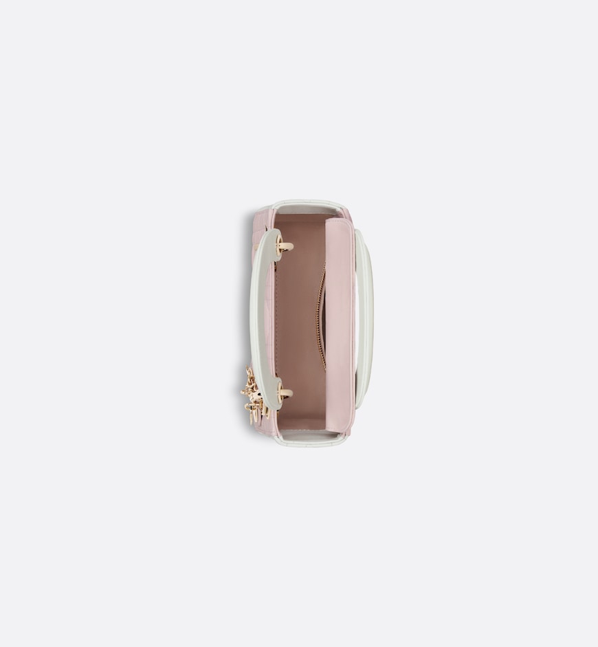 The Lady Dior bag embodies Dior’s vision of elegance and beauty. Sleek and refined, the timeless and modern style is crafted in two-tone latte and powder pink lambskin with Cannage stitching, creating the instantly recognizable quilted texture. Pale gold-finish metal D.I.O.R. charms further embellish and illuminate its silhouette. Featuring a removable chain shoulder strap, the miniature Lady Dior bag can be carried by hand, worn over the shoulder or crossbody as an ideal evening wear companion.