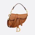 Maria Grazia Chiuri brings a fresh update to the iconic Saddle bag. Crafted in golden saddle grained calfskin, the legendary design features a Saddle flap with a D stirrup strap and magnetic pull, as well as an antique gold-finish metal CD signature on either side of the handle. Equipped with a thin, adjustable and removable shoulder strap, the miniature Saddle bag may be carried by hand, worn over the shoulder or crossbody.