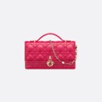 • The My Dior mini bag elevates the line with an elegant and functional design. Crafted in passion pink lambskin with Cannage stitching, it features a flap enhanced by D.I.O.R. charms on the front. Equipped with compartments and card slots, the functional accessory holds all the essentials and is the ideal day and evening companion. A top handle completed by a removable chain punctuated with resin pearls allows the bag to be carried by hand or worn crossbody.