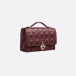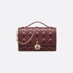 The My Dior Top Handle bag presents an elegant and functional design. The bag is crafted in burgundy lambskin with Cannage stitching and features a flap enhanced by D.I.O.R. charms as well as two compartments and a zip pocket to accommodate all the essentials, day or night. The signature Top Handle is completed by a removable chain strap with a leather insert, allowing it to be comfortably carried by hand, worn over the shoulder or crossbody.