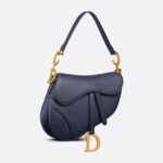 - Maria Grazia Chiuri brings a fresh update to the iconic Saddle bag. Crafted in indigo blue grained calfskin, the legendary design features a Saddle flap with a D stirrup strap and magnetic pull, as well as an antique gold-finish metal CD signature on either side of the handle. Equipped with a thin, adjustable and removable strap, the Saddle bag may be carried by hand, worn over the shoulder or crossbody.