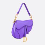 - Maria Grazia Chiuri brings a fresh update to the iconic Saddle bag. Crafted in purple grained calfskin, the legendary design features a Saddle flap with a D stirrup strap and magnetic pull, as well as an antique gold-finish metal CD signature on either side of the handle. Equipped with a thin, adjustable and removable strap, the Saddle bag may be carried by hand, worn over the shoulder or crossbody.