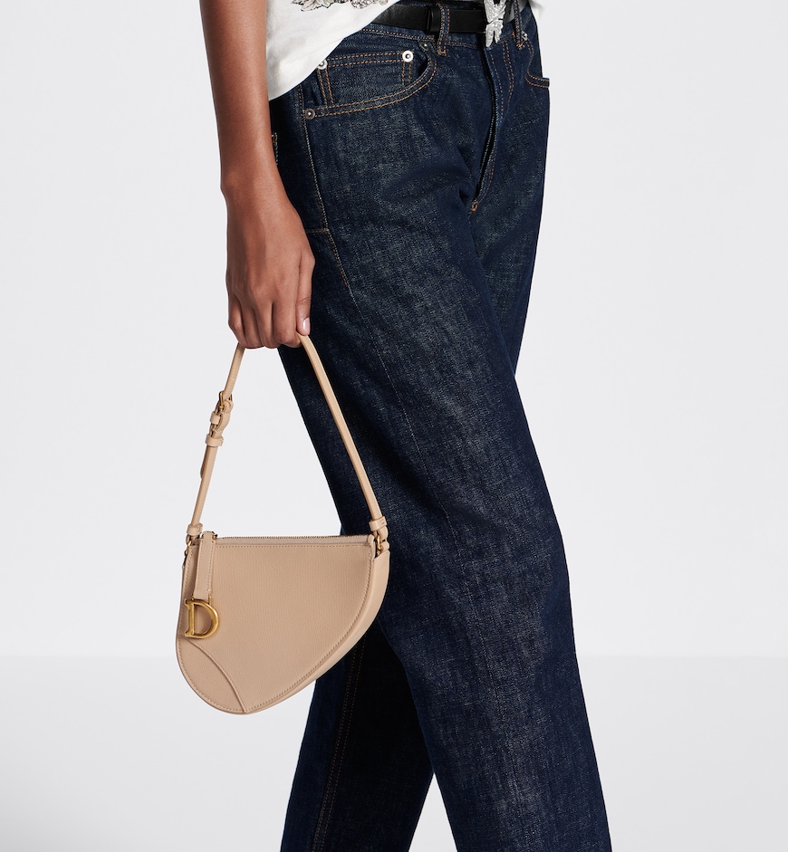 The Saddle Rodeo pouch reimagines the namesake line’s hallmark codes, including the antique gold-finish metal D stirrup. Crafted in biscuit goatskin, it features a compact design and a compartment to hold all the essentials with one slip pocket and three card slots. Equipped with an adjustable leather strap, the pouch can be worn over the shoulder for daytime or evening.
