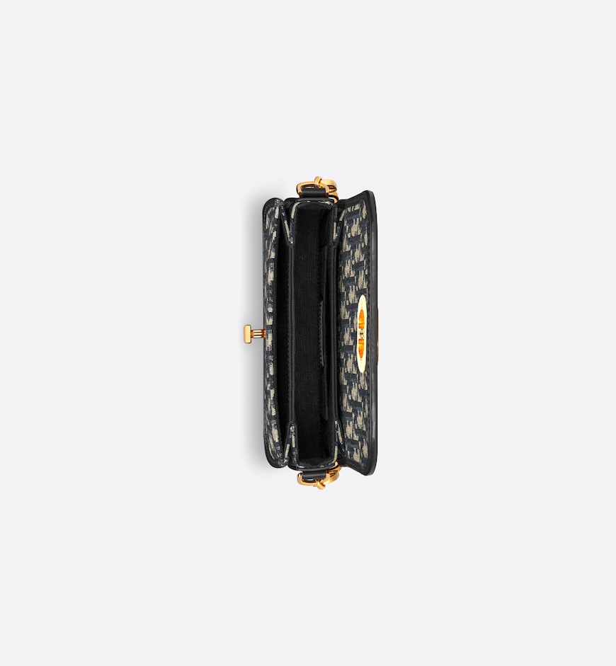 The 30 Montaigne Avenue bag enhances the hallmark line with a timeless and elegant style. Crafted in blue Dior Oblique jacquard, the rounded flap with delicate curves is punctuated by an antique gold-finish metal CD twist clasp inspired by the seal of a Christian Dior perfume bottle. The design is completed by other details, like the 30 Montaigne signature embossed on the back and the signature chain alternating gold-finish metal and enamel links. The small, gusseted bag features a refined silhouette that can be carried by hand, worn over the shoulder or crossbody.