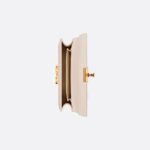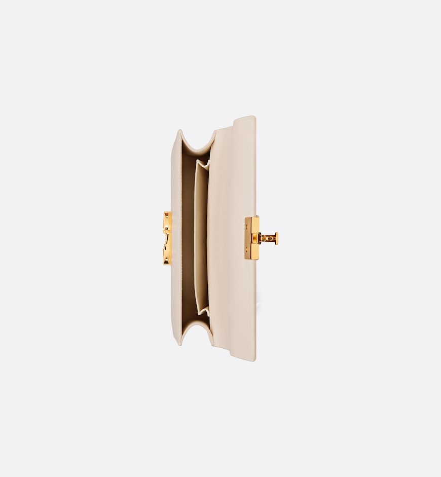 The bag enhances the 30 Montaigne line with a timeless and elegant design crafted in dusty ivory calfskin. The flap has an antique gold-finish metal CD clasp, inspired by the seal of a Christian Dior perfume bottle. Other details, like the embossed 30 Montaigne signature on the back and the military-inspired buckle, highlight the streamlined design. Featuring an adjustable leather shoulder strap, the small 30 Montaigne bag can be carried by hand, worn over the shoulder or crossbody.