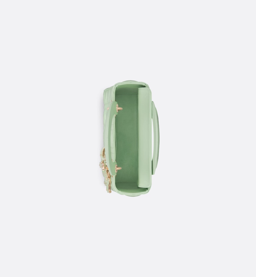 • The Lady Dior bag embodies Dior’s vision of elegance and beauty. Sleek and refined, the timeless yet modern style is crafted in pastel mint lambskin with Cannage stitching, creating the unmistakable quilted texture. The D.I.O.R. charms embellished in transparent tonal resin illuminate its silhouette. Featuring a thin, removable leather shoulder strap, the small Lady Dior bag can be carried by hand or worn
