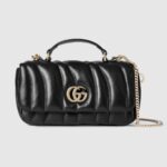 The GG Milano top handle bag debuted at the Fall Winter 2024 fashion show during Milan Fashion Week, paying tribute to the city which inspired the design. It features a new Double G hardware, and the puffy leather has a soft and silky quilted pattern. The chain strap allows the bag to be worn crossybody or on the shoulder.