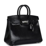 Hermès Birkin 25 Black Shiny Varanus Niloticus Lizard Palladium Hardware