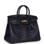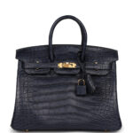 Hermès Birkin 25 Bleu Indigo Matte Alligator Gold Hardware