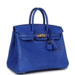 Hermès Birkin 25 Bleu Royal Matte Porosus Crocodile Gold Hardware