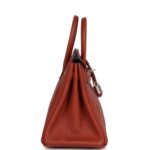 This Verso Birkin is in Cuivre Taurillon Novillo leather with palladium hardware, has tonal stitching, front flap, two straps with center toggle closure, clochette with lock and two keys, and double rolled handles.