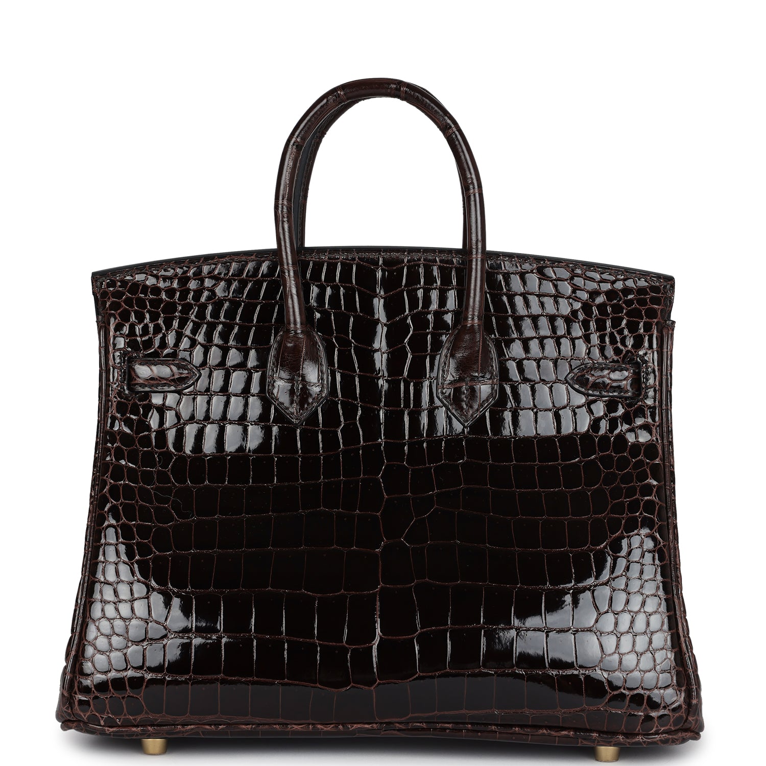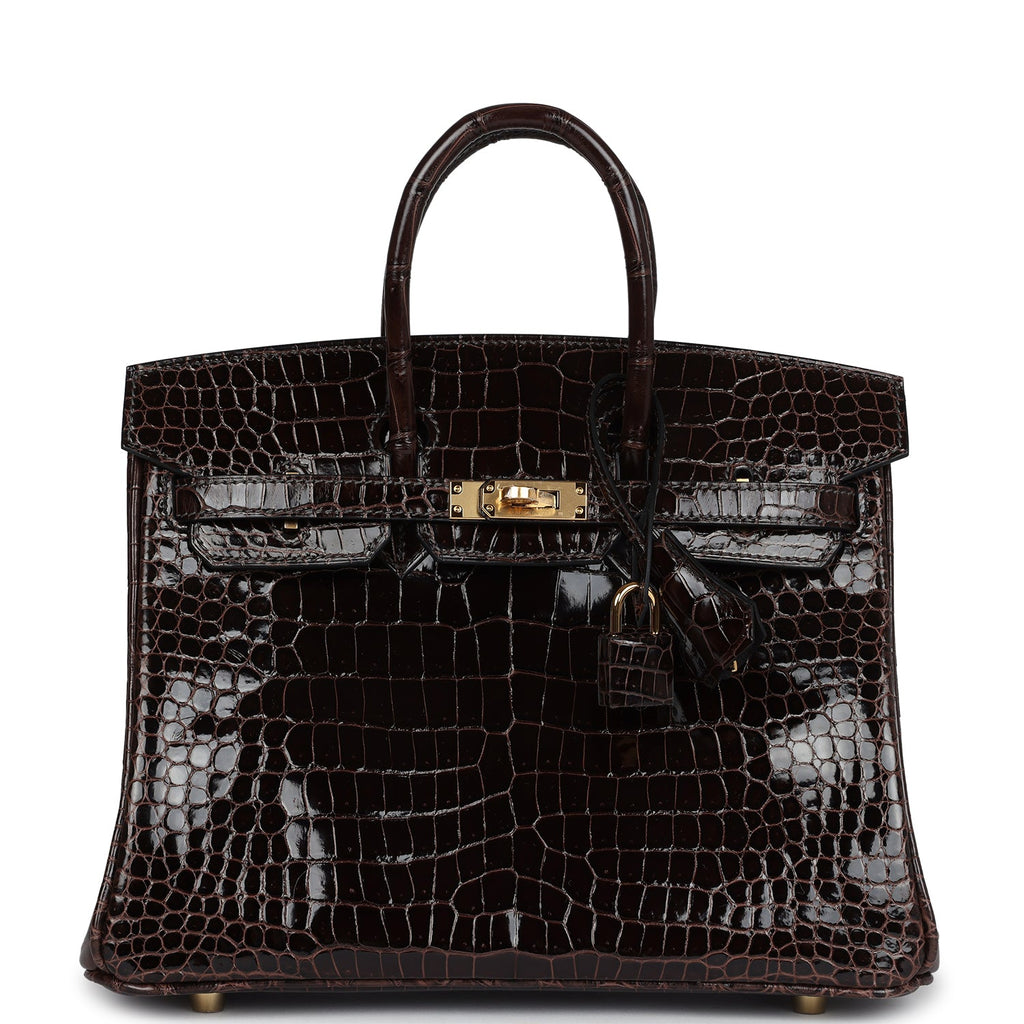 Hermès Birkin 25 Macassar Shiny Porosus Crocodile Gold Hardware