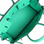 The interior is lined with Menthe swift and has one zip pocket with an Hermès engraved zipper pull and an open pocket on the opposite side.