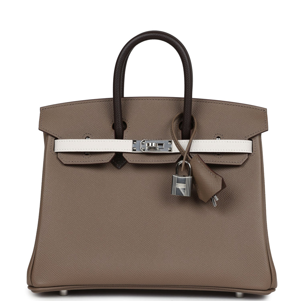 Hermès Birkin 25 Tri-color Etoupe, Ebene and Gris Pale Epsom Palladium Hardware