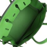The interior is lined with Vert Yucca swift leather and has one zip pocket with an Hermès engraved zipper pull and an open pocket on the opposite side.
