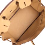 This Birkin is in Biscuit togo leather with gold Hardware, tonal stitching, front flap with two straps, front toggle closure, clochette with lock and two keys, and double rolled handles