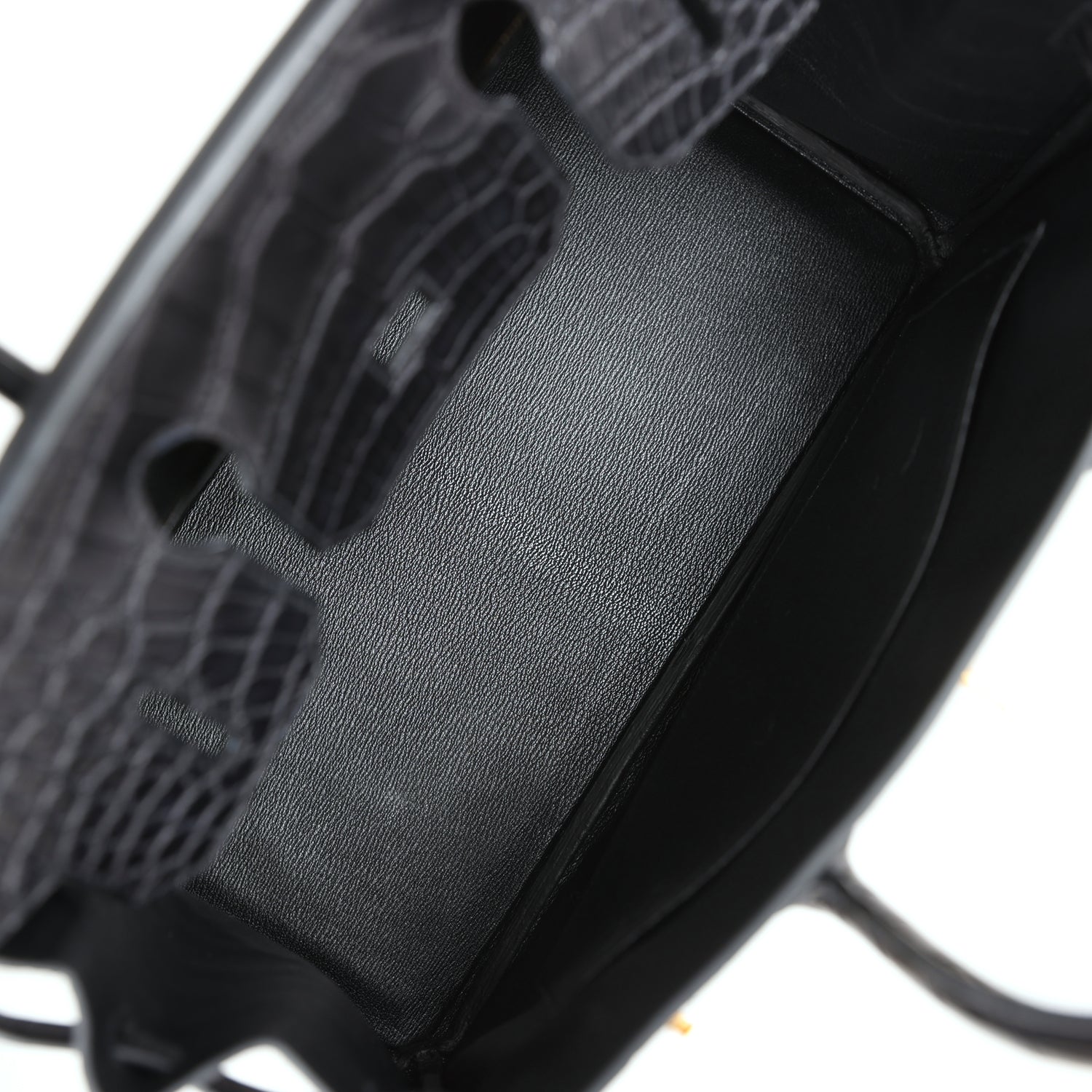 The interior is lined with black chevre and has one zip pocket with an Hermès engraved zipper pull and an open pocket on the opposite side.