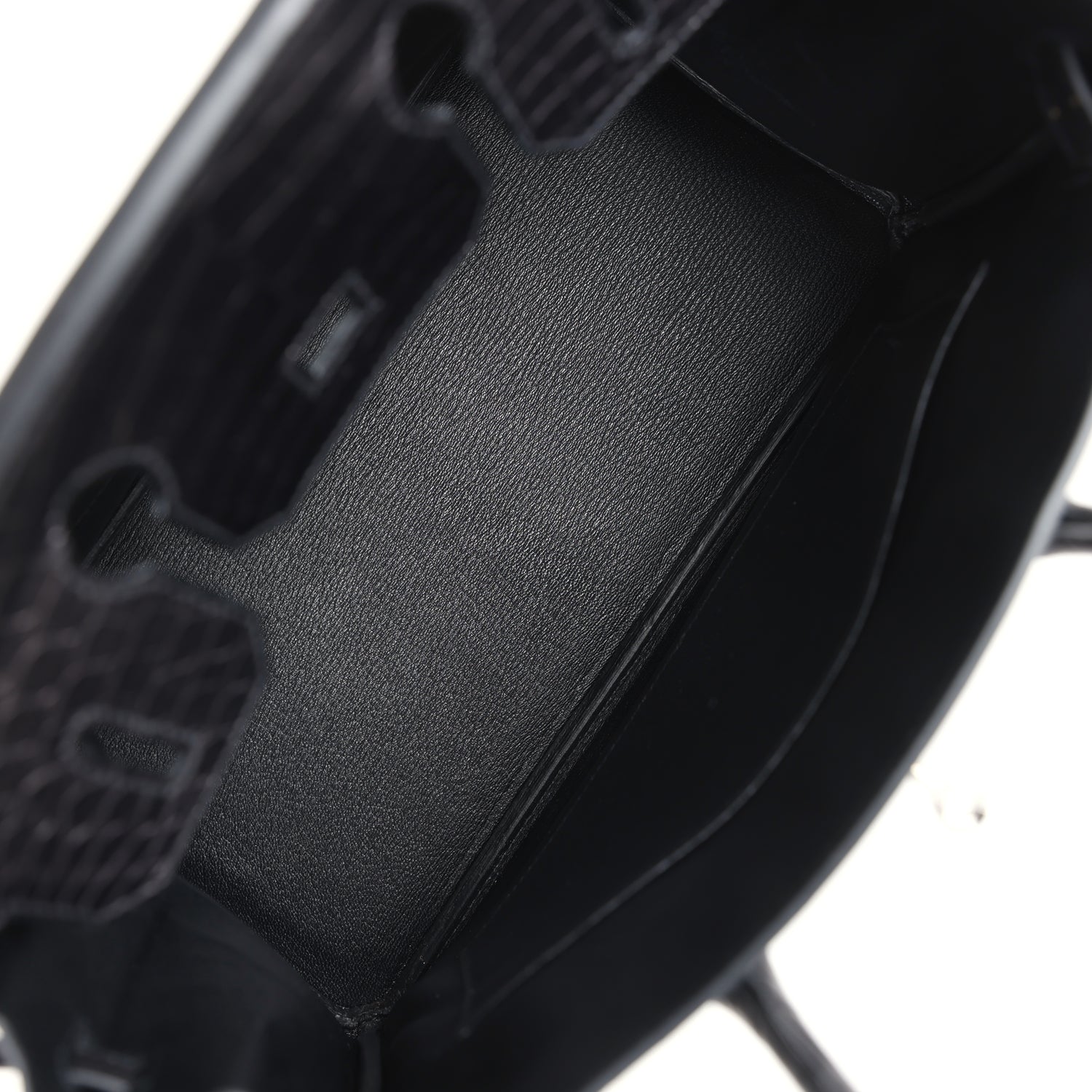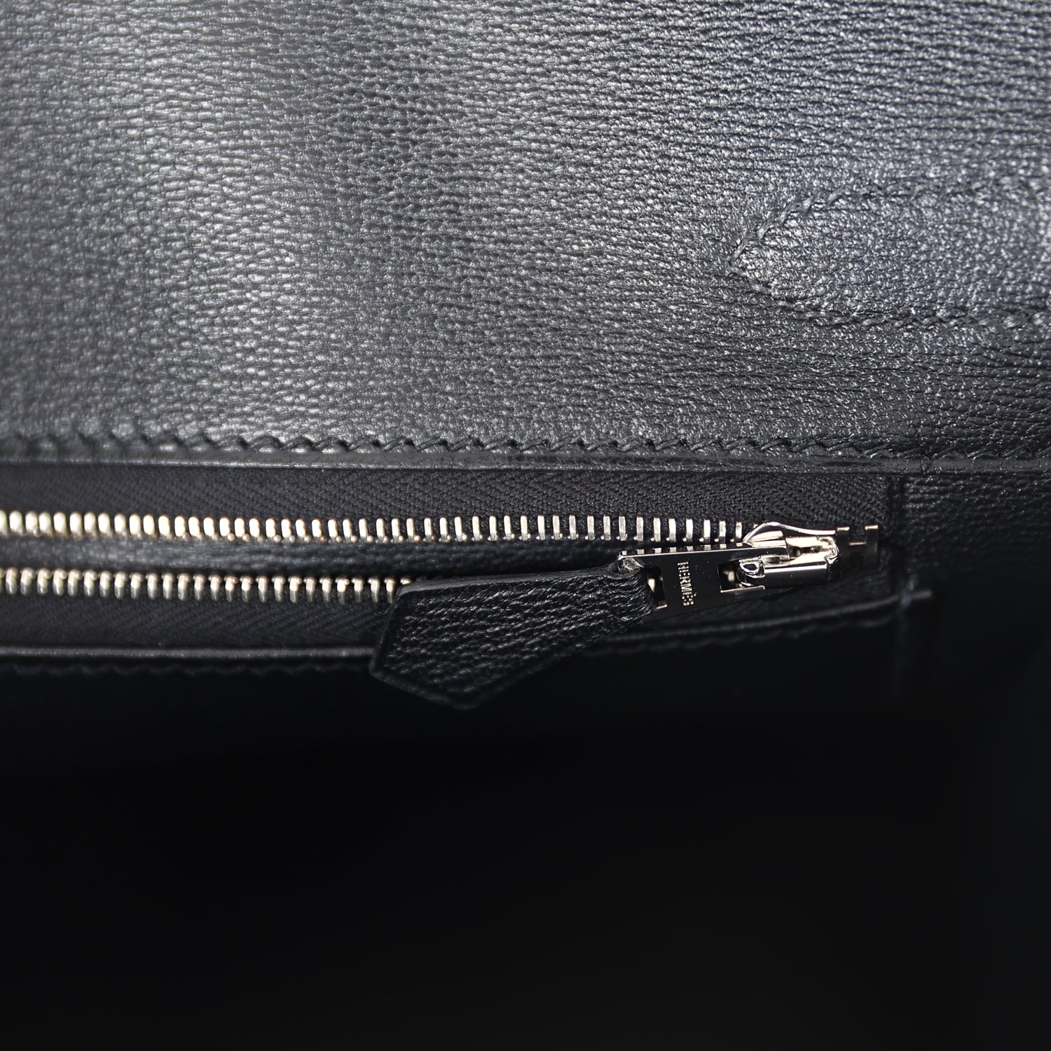 The interior is lined with Black chevre and has one zip pocket with an Hermès engraved zipper pull and an open pocket on the opposite side.