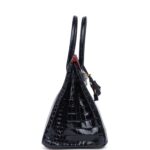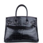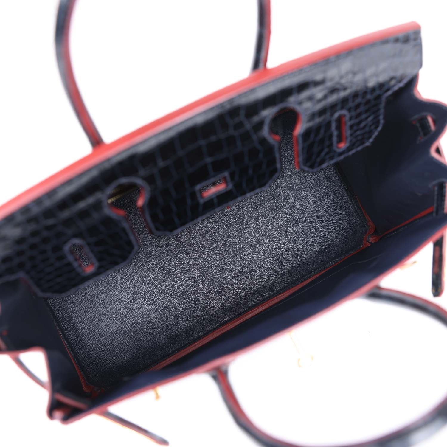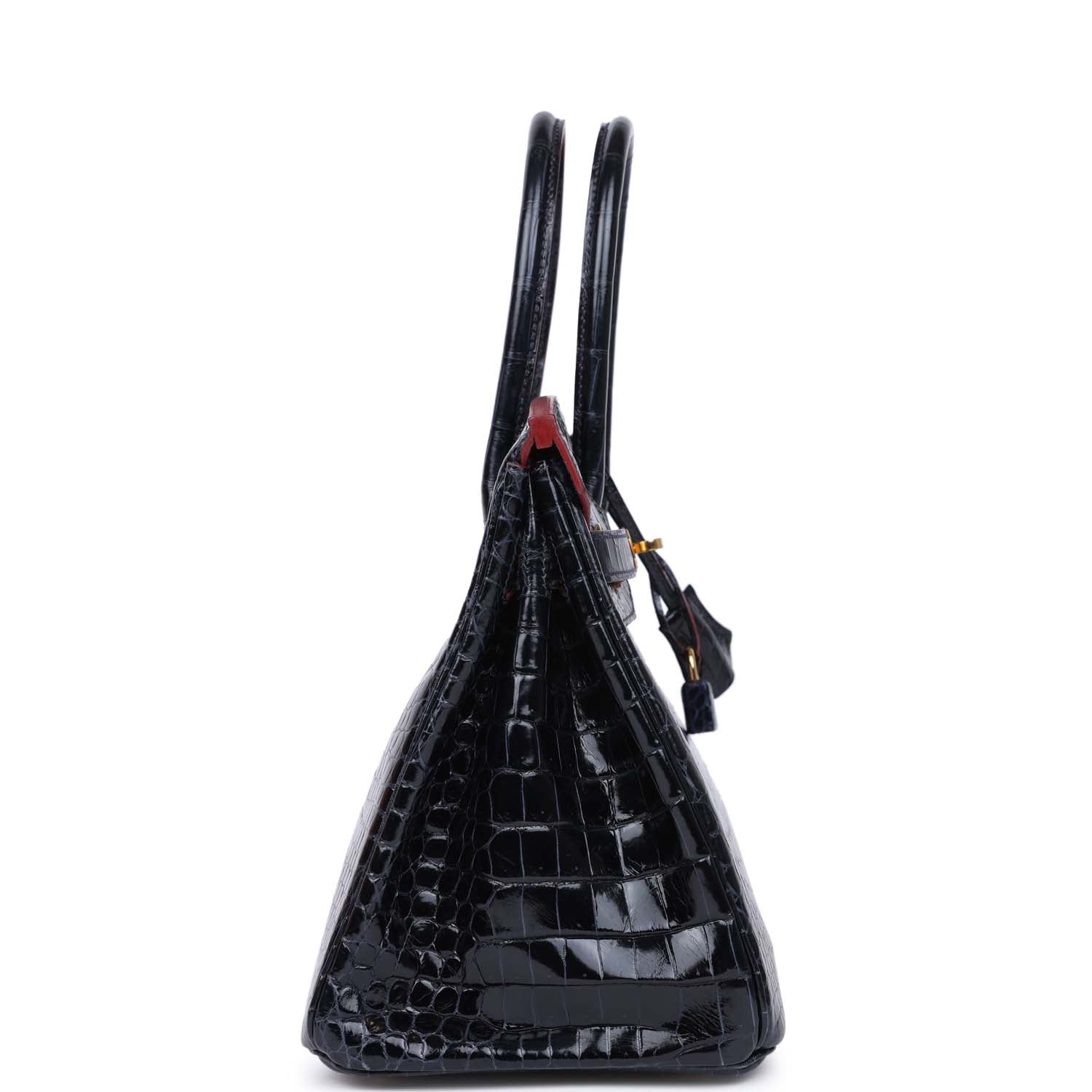 Hermès Birkin 30 Bleu Marine and Rouge H Contour Shiny Porosus Crocodile Gold Hardware