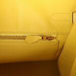 The interior is lined with Mimosa chevre and has one zip pocket with an Hermès engraved zipper pull and an open pocket on the opposite side.