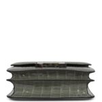 This Constance 1-18 Gris Ciment Shiny Alligator Mississippiensis leather with palladium hardware, tonal stitching, metal “H” snap closure, and an adjustable strap.
