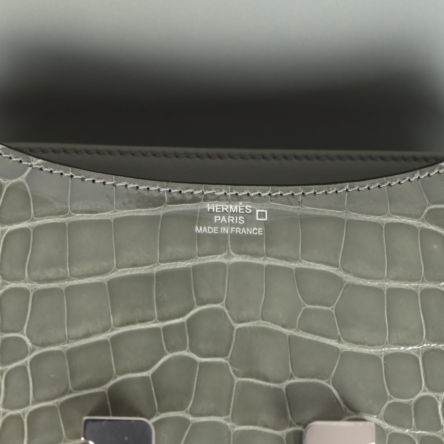 Hermès Constance 18 Gris Ciment Shiny Alligator Palladium Hardware
