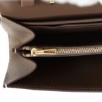 The interior is lined with Etoupe leather and two main compartments with six credit card slots and a zippered center compartment with Hermès H lock pull.