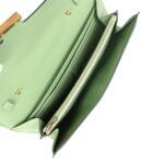 The interior is lined with Vert Criquet leather and two main compartments with six credit card slots and a zippered center compartment with Hermès H lock pull.