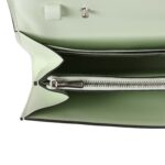 This Constance Wallet To Go is in Vert Fizz epsom leather with palladium hardware and has tonal stitching, metal “H” snap lock closure, open front compartment and removable crossbody strap.