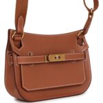 This Jypsiere mini is in Gold evercolor leather with gold hardware and has contrast stitching, a single flap, two pull straps, turnlock closure, and an adjustable wooly shoulder strap.