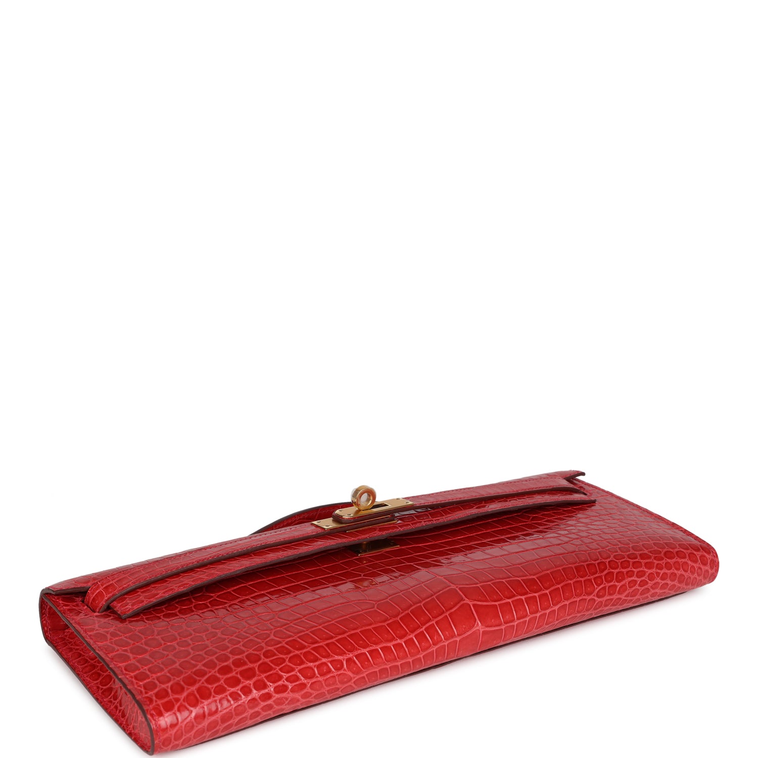 Hermès Kelly Cut Bougainvillea Shiny Porosus Crocodile Gold Hardware