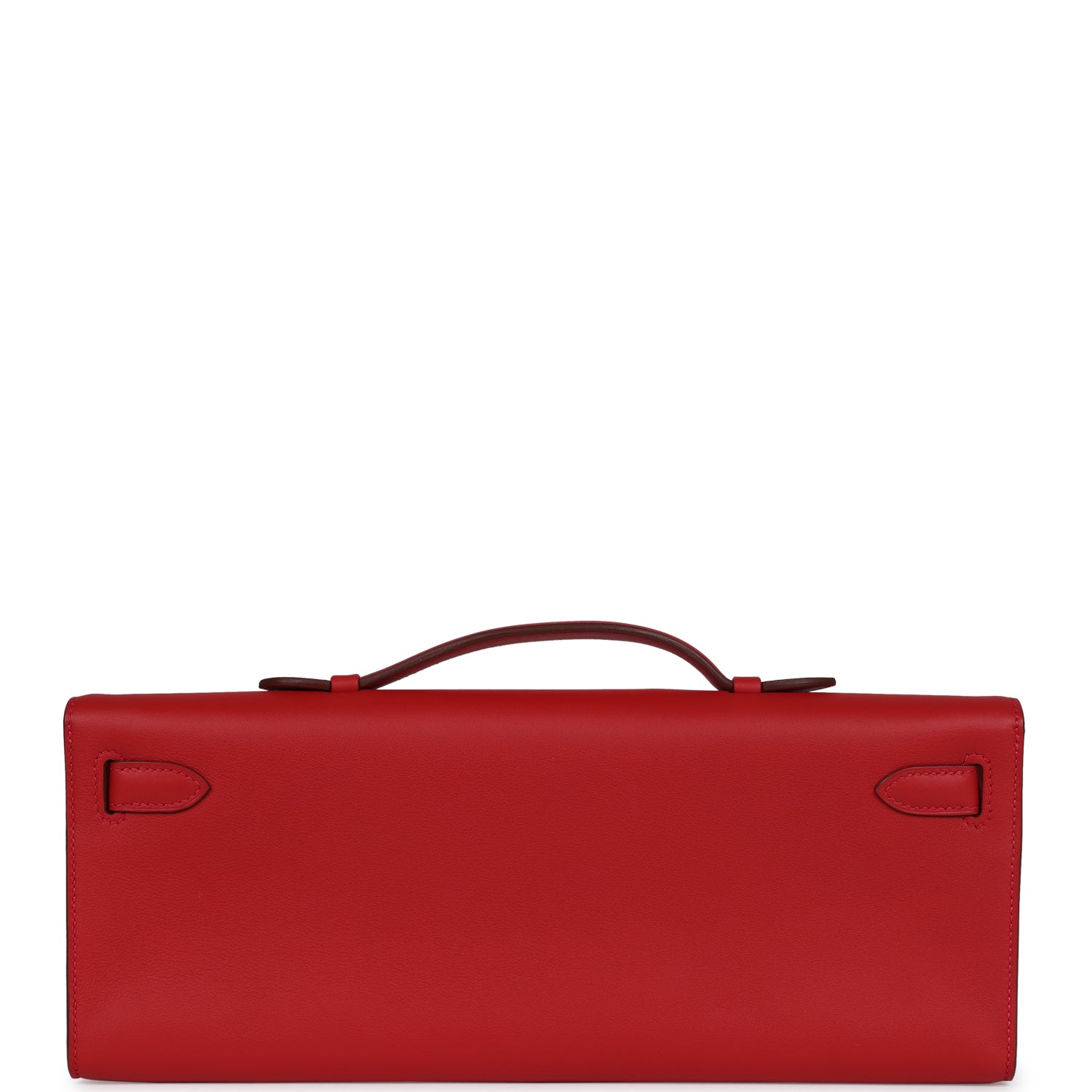 This Kelly Cut is in Rouge Casaque swift leather with gold hardware and has tonal stitching, two straps with front toggle closure and a top flat handle.