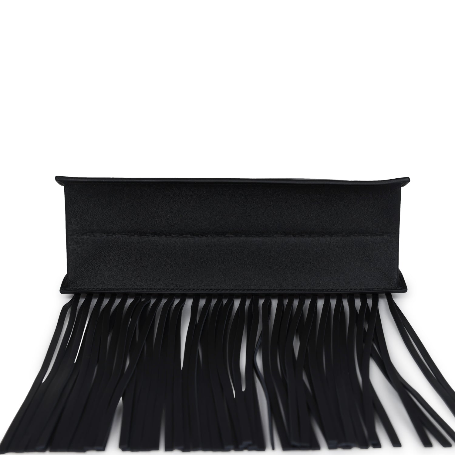 This limited edition Kelly Danse Anate is in Black swift leather with palladium hardware and has tonal stitching, long fringe detailing, two straps with front flap closure and an adjustable flat crossbody/backpack/belt strap.