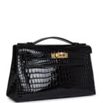 Hermès Kelly Pochette Black Shiny Porosus Crocodile Gold Hardware
