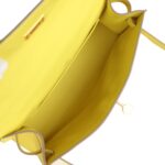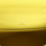 This Kelly Pochette is in Lime swift leather with gold hardware and has tonal stitching, front flap, two straps with center toggle closure and a top flat handle.