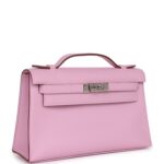 Hermès Kelly Pochette Mauve Sylvestre Swift Palladium Hardware
