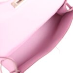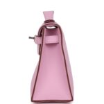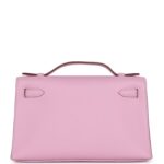 This Kelly Pochette is in Mauve Sylvestre swift leather with palladium hardware and has tonal stitching, front flap, two straps with center toggle closure and a top flat handle.