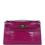 Hermès Kelly Pochette Rose Scheherazade Shiny Alligator Gold Hardware