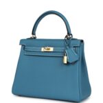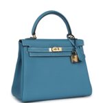 Hermès Kelly Retourne 25 Blue Jean Togo Gold Hardware
