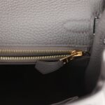 The interior is lined with Etain chevre leather and has one zip pocket with an Hermès engraved pull and one open pocket on the opposite side.