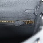 The interior is lined with Gris Misty chevre and features one zip pocket with an Hermès engraved pull and one open pocket on opposite side.